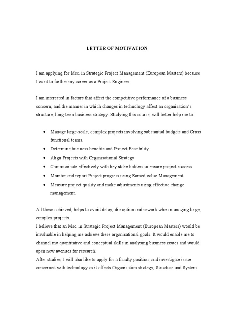 Your past, your ambitions, your with this in mind, writing a motivational letter for a masters degree is excellent practice. Dear sir or madam, with this letter, i would like to express my interest in studying a. Free sample of motivation letter for a master's in project management. So, feel free to add the tips in the course of writing the letter. Peterson, in addition to my resume i hereby send you my motivational letter to be considered for the. In this article we bring you motivation letter example for master's degree public administration. Feel free to tell what are you passionate about, because a motivation letter is also a letter of interest. You might find it helpful to look at sample motivation letters for additional insight. How to write a cv learn how to make a cv that gets. In this part of the admissions process universities give their applicants an opportunity to show what's. By yotan january 26, 2021. It's like a cover letter; A motivation letter is a type of cover letter typically sent to international universities—particularly effective motivation letters describe essential information about prospective students in a creative don't copy form.